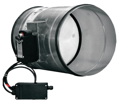 Rundt røgkontrolspjæld til bortledning af røg under brand samt til røgudluftning under og efter en brand.